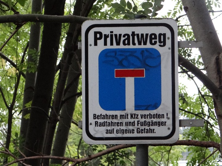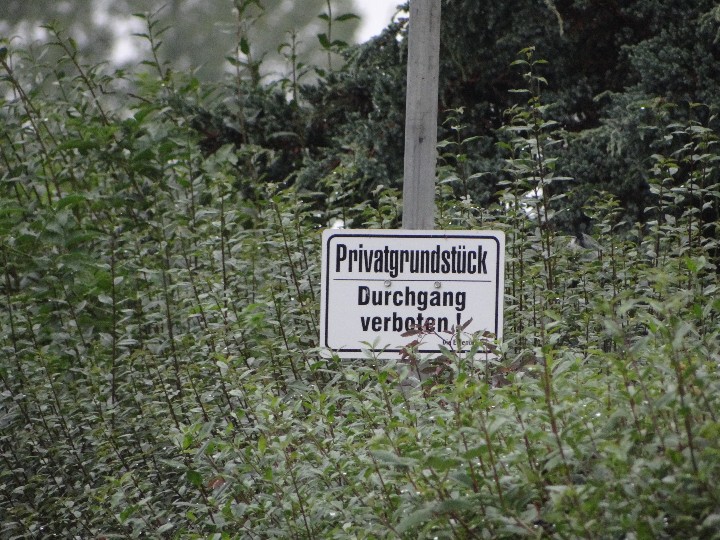 P.S. Abschließend bleibt so ganz nebenher natürlich auch noch auf Folgendes hinzuweisen. Durch den Grundstückseigentümer erfolgt eine private Aufstellung des Verkehrszeichens No. 357.