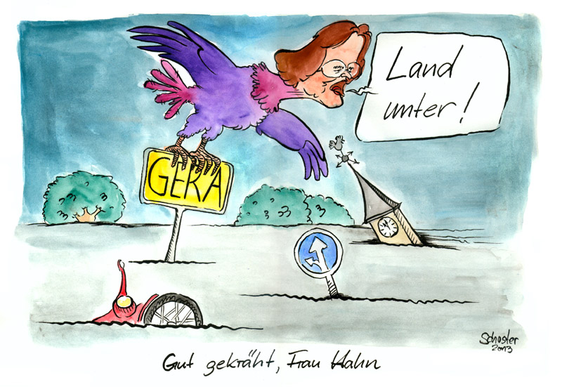 Die Weiße Elster war Anfang Juni in Gera über die Ufer getreten, so dass mehrere Stadtteile unter Wasser standen. In Thüringens drittgrößter Stadt galt deswegen Katastrophenalarm. Die Schäden werden inzwischen auf rund 30 Millionen Euro beziffert. Mit 4,58 Metern sei der Wasserstand der Weißen Elster um einen Meter höher gewesen als zunächst von Experten prognostiziert, betonte Hahn.