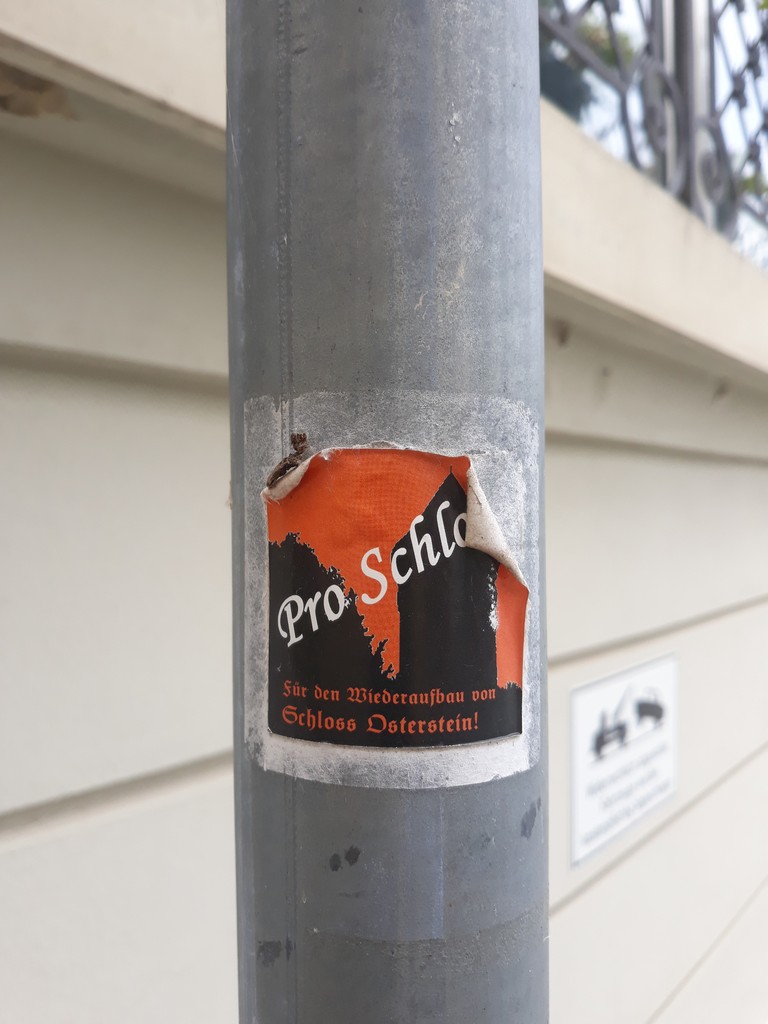 dafür spricht auch, dass der Schriftzug Für den Wiederaufbau von Schloss Osterstein in Fraktura geschrieben ist.