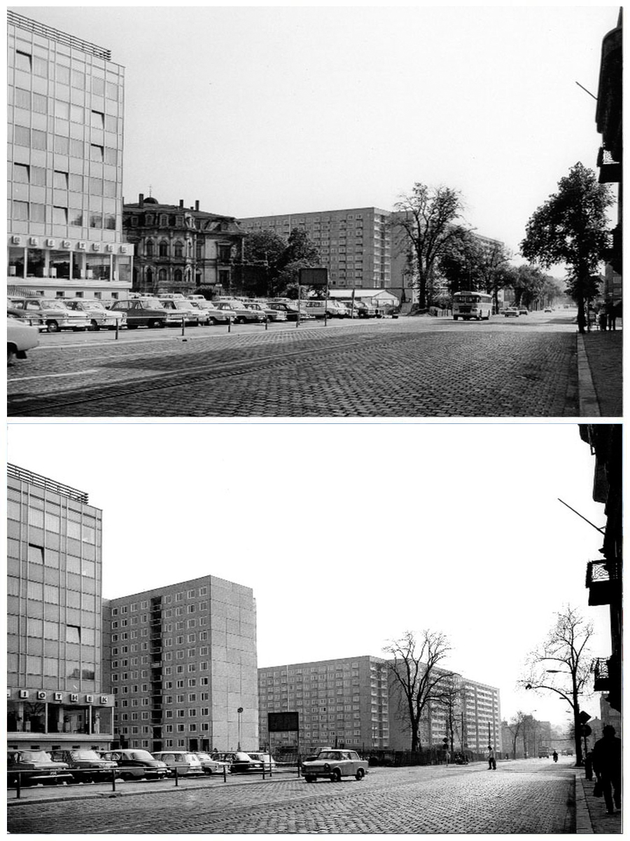 und ein Vergleich (Die Villa 1973 kurz vor der Spengung, um PLatz zu schaffen für besagten Plattenbau)