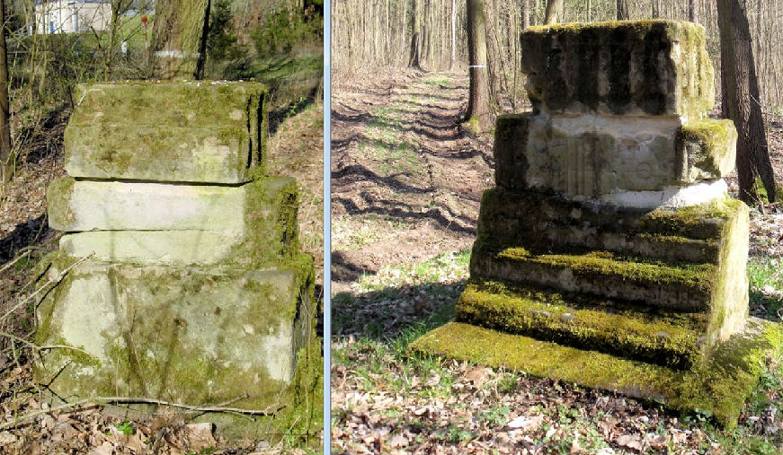 Das Bild zeigt die Reste der Torsäulen des Badertors in der Vollersdorfer Wüstung.