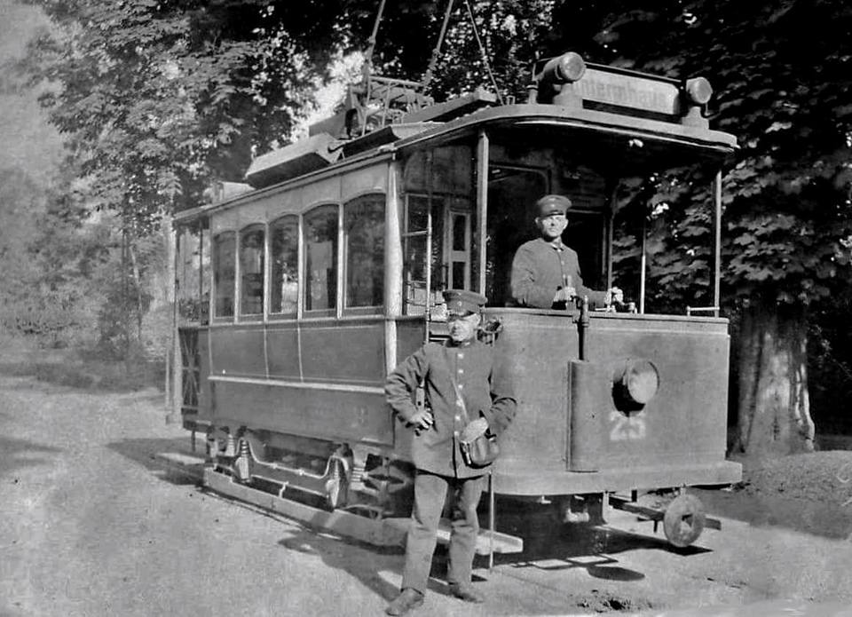 Linie A von Untermhaus (etwa Holzbrücke) ins Lindenthal, wo heute die Haltestelle Wintergarten ist, hier war auch das Straßenbahndepot.