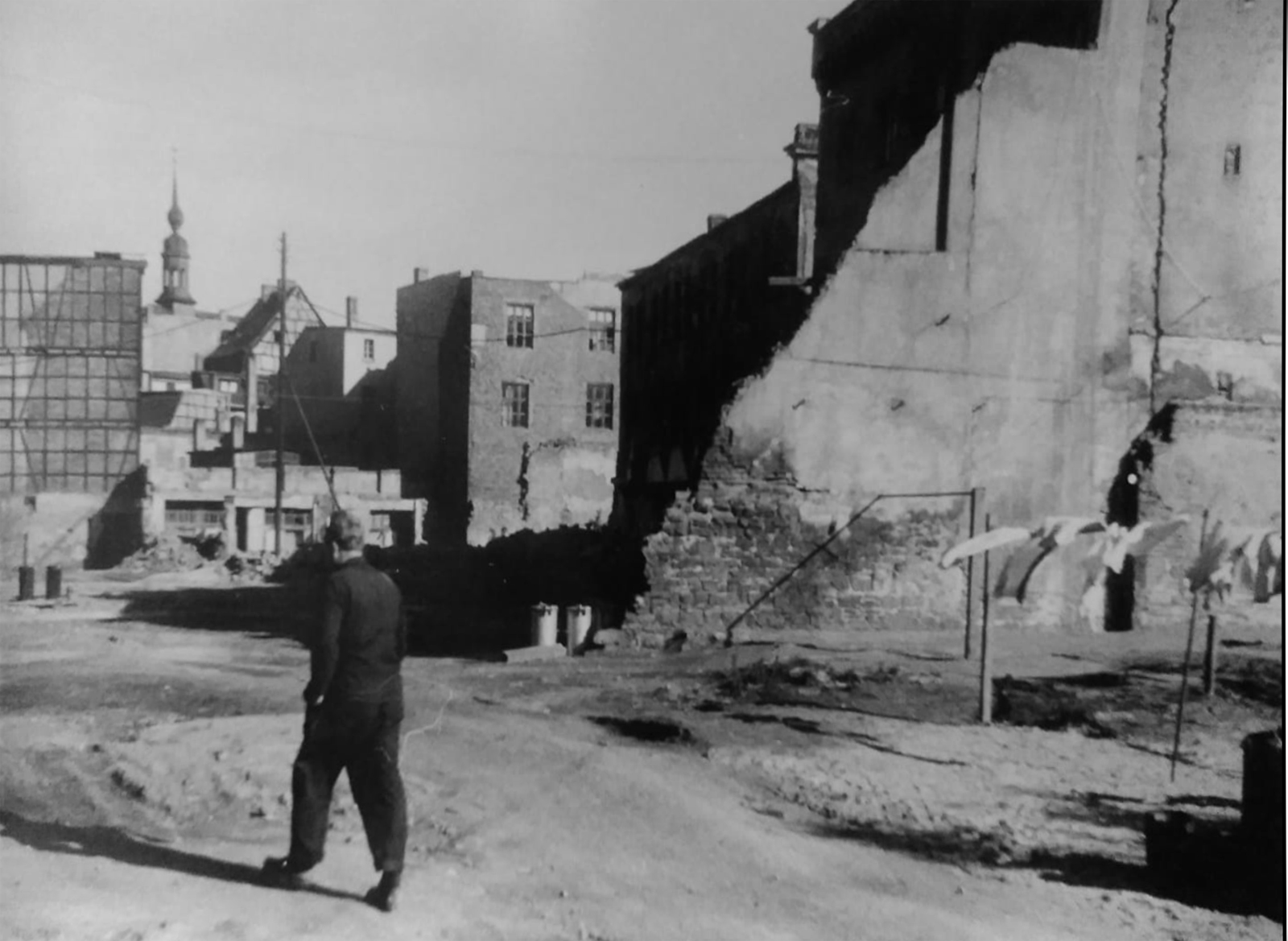 Der Mühlgraben wird erst 1962 verrohrt und die damalige Ernst-Thälmann-Straße (Reichsstraße) geht nur bis zum Harbouplatz, wurde also noch nicht bis zum Museum verlängert.