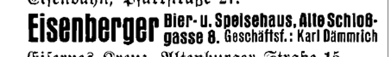 Wer hat noch Bilder oder Informationen von der "Hopserdiele oder Eisenberger Bierstube in der alten Schloßgasse 8 (heute Forian-Geyer.Str.)