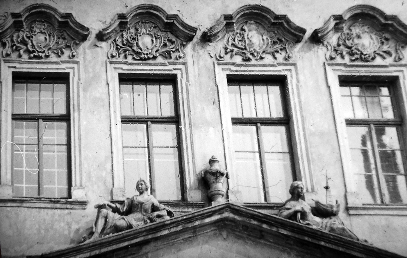 Vor 1961 konnte man die weiblichen Figuren auf dem Portal und die Ornamente über den Fenstern noch bewundern, stand es doch damals unter Denkmalschutz,