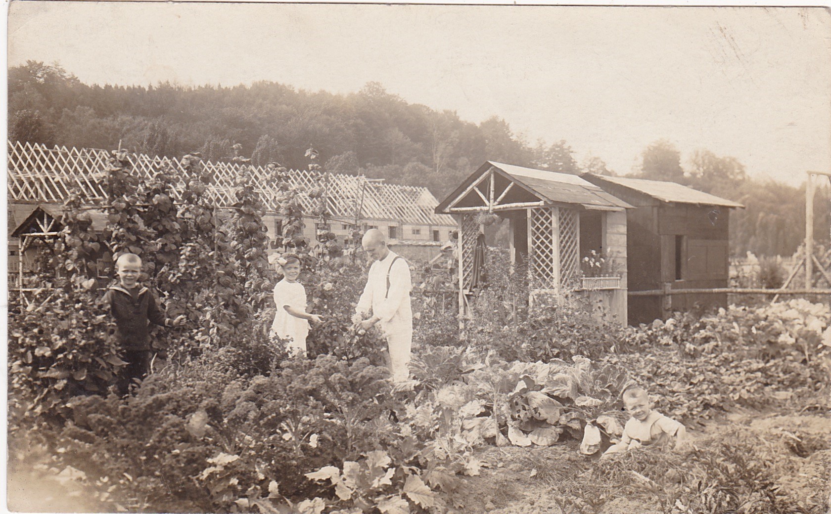 was man auf dem alten Foto, links neben der Gartenlaube, gut erkennen kann.