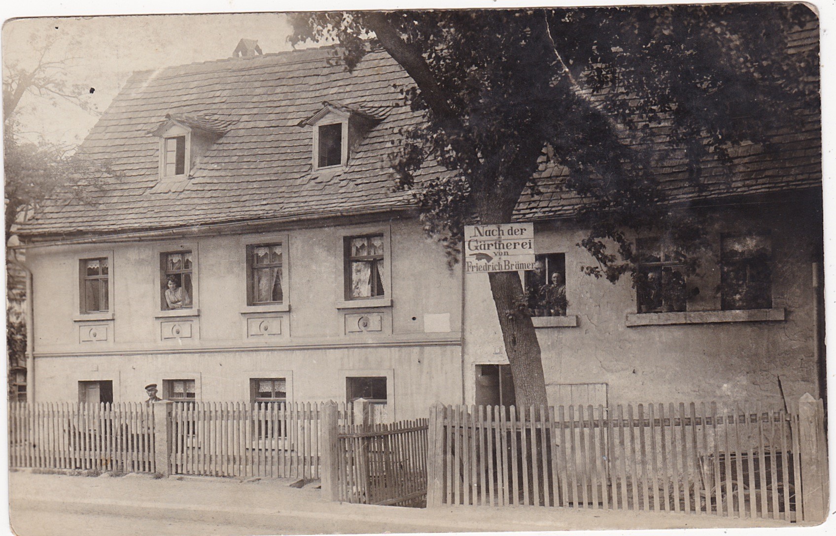 Sehen wir uns doch einmal das Schild an. Die Aufschrift lautet "Nach der Gärtnerei von Friedrich Brämer".