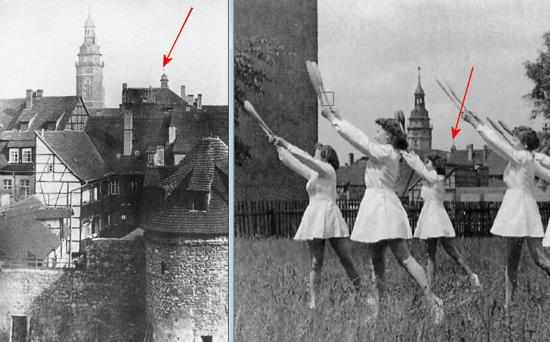 frage ich mich, ob man da nicht zu tief steht, um in Horizontalblick den Turm auf dieser Höhe zu sehen. Desweiteren beachte man die Schattenwürfe.