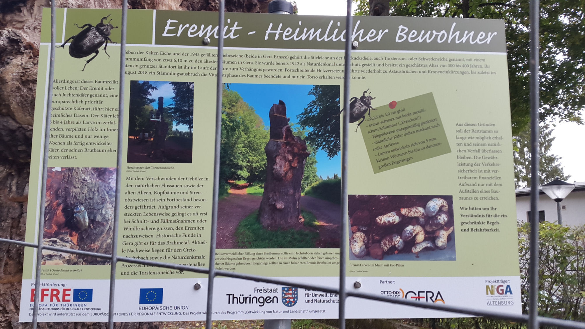 Aus der Not eine Tugend zu machen hat man das Baumdenkmal wiederum auf eine geschützte Liste gesetzt. Diesmal sind es die Eremitkäfer, denen man den Stumpf
