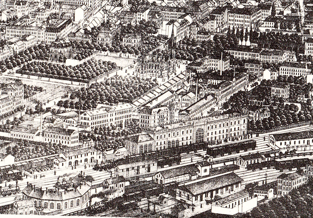 Auf dem folgenden Bild ist der Bahnhof schon umgestaltet, Villa Meyer schon eingezeichnet
