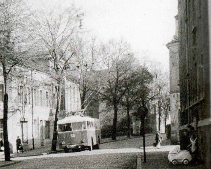 wovor auf dem alten Foto der O-Bus gerade vorbeigefahren ist.