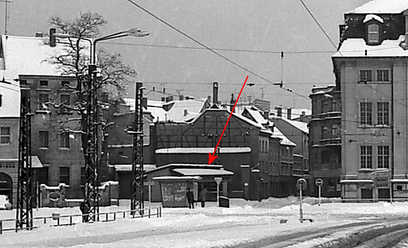Rechts, vermutlich die erste Standort der Tombolabude, dann gab es einen HO Kiosk und einen für Kraftverkehr & Straßenbahn.