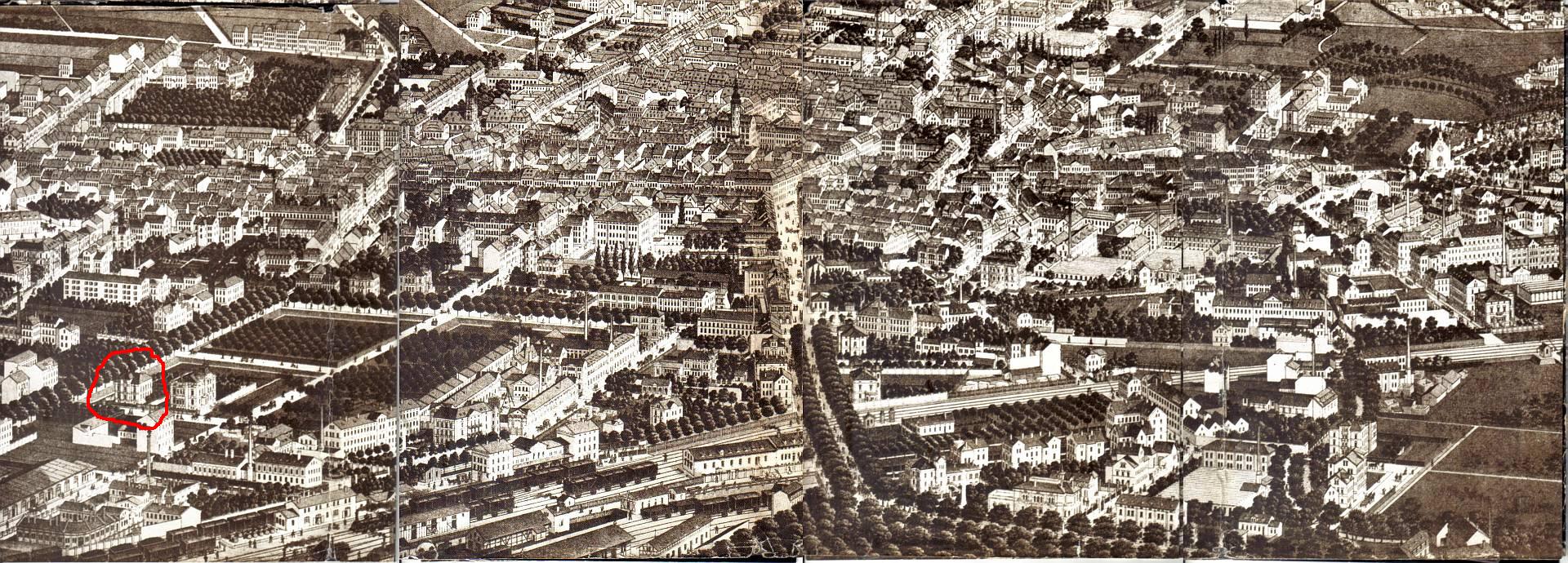 auf dem Bild von Fischer ist die Villa am Neustadtplatz (Wendelin-Hippler-Platz) zu sehen