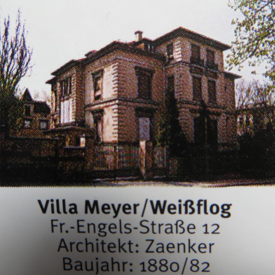 Die Villa Meyer-Weißflog, in der Friedrich-Engels-Straße 12, die vom bekannten Architekten Zaenker, um 1887 erbaut wurde.
