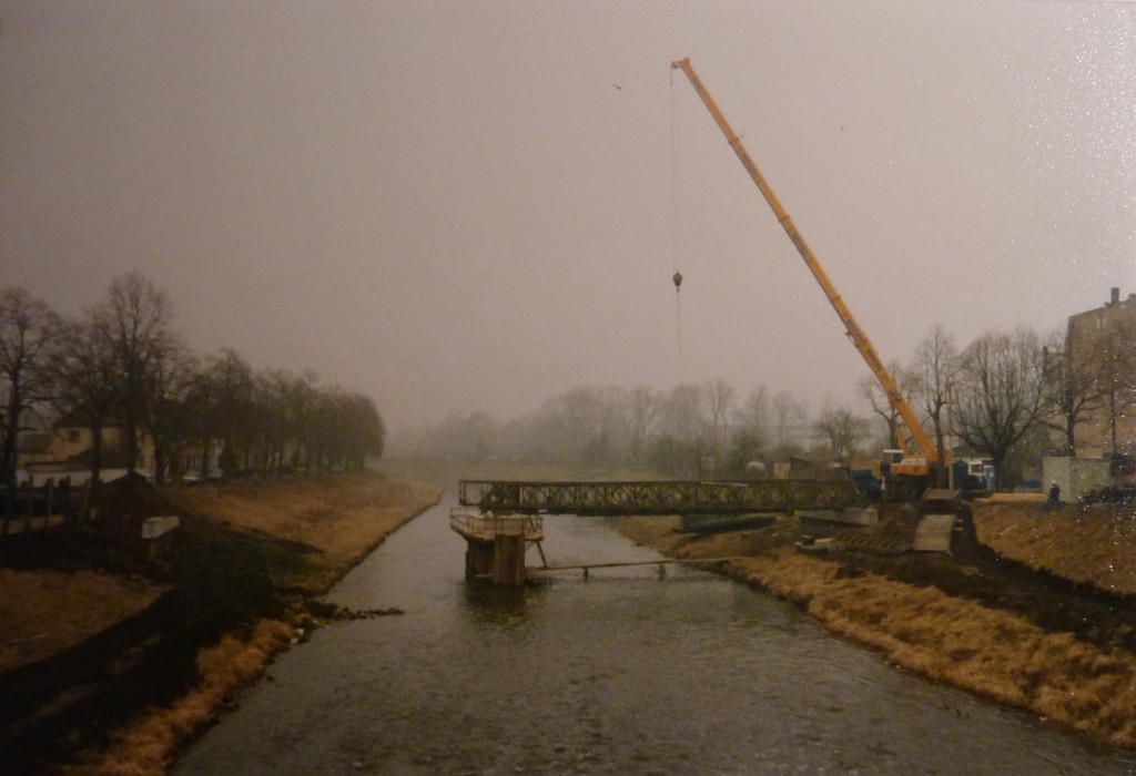 Etwas Entlastung gab es erst, als im Februar 1993 eine separate Behelfsbrücke herbeigeschafft wurde, die auf Höhe des jetzigen Netto-Parkplatzes kam: