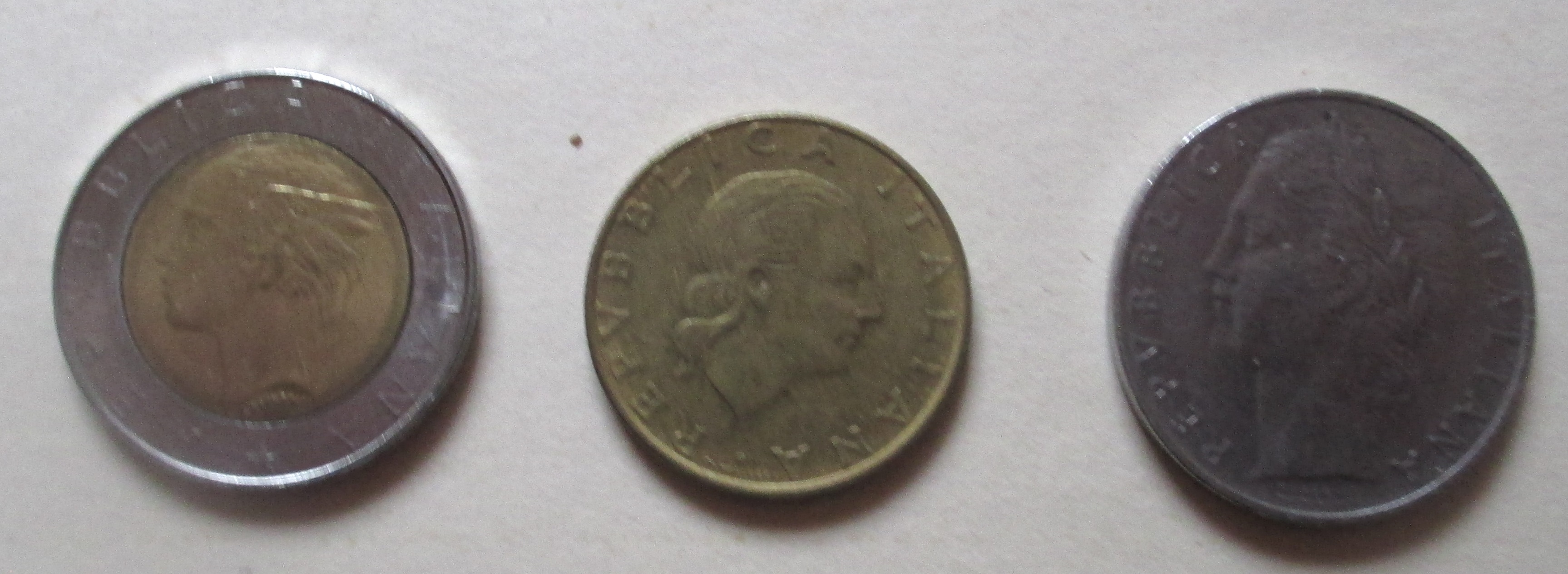 Vielleicht möchte einer der Hobby-Numismatiker diese drei Münzen haben. Es handelt sich um 500 Lira, Nennung auch in Brailleschrift, 100 Lira aus dem Jahr 1968 sowie 200 Lira von 1978.