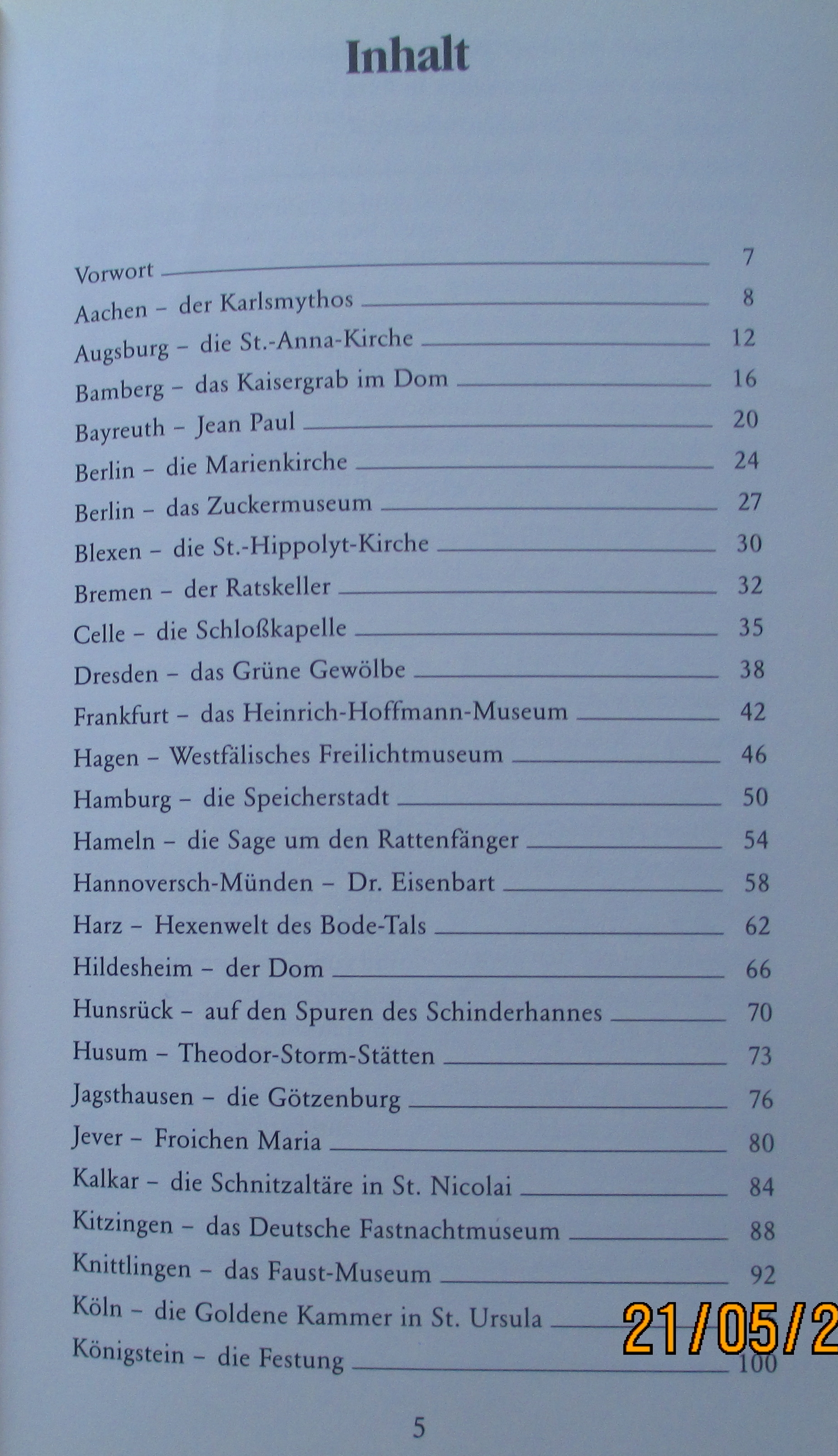 Gebundenes Buch mit 208 Seiten. Ein Streifzug durch deutsche Städte, von Aachen bis Wuppertal, mit kulturellen Sehenswürdigkeiten. Interessant für den kulturell interessierten Ausflügler!