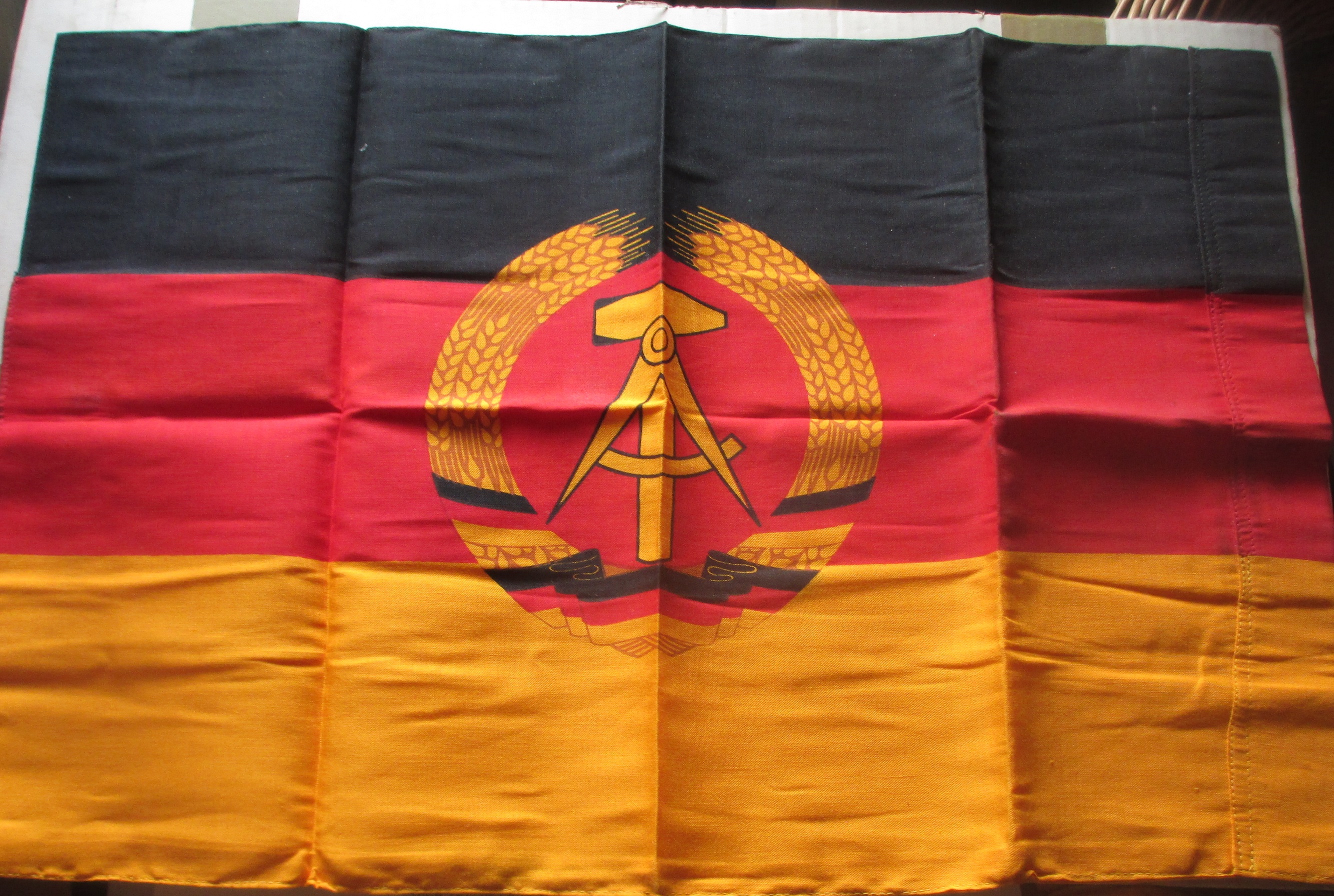 Für alle, die sich vorsorglich wappnen wollen, falls es mal wieder andersherumgeht, biete ich hier eine gut erhaltene DDR-Fahne an. Durch frühzeitiges Heraushängen kann dokumentiert werden, dass man trotz aller Widrigkeiten an die Wiederkehr des Sozialismus geglaubt hat.