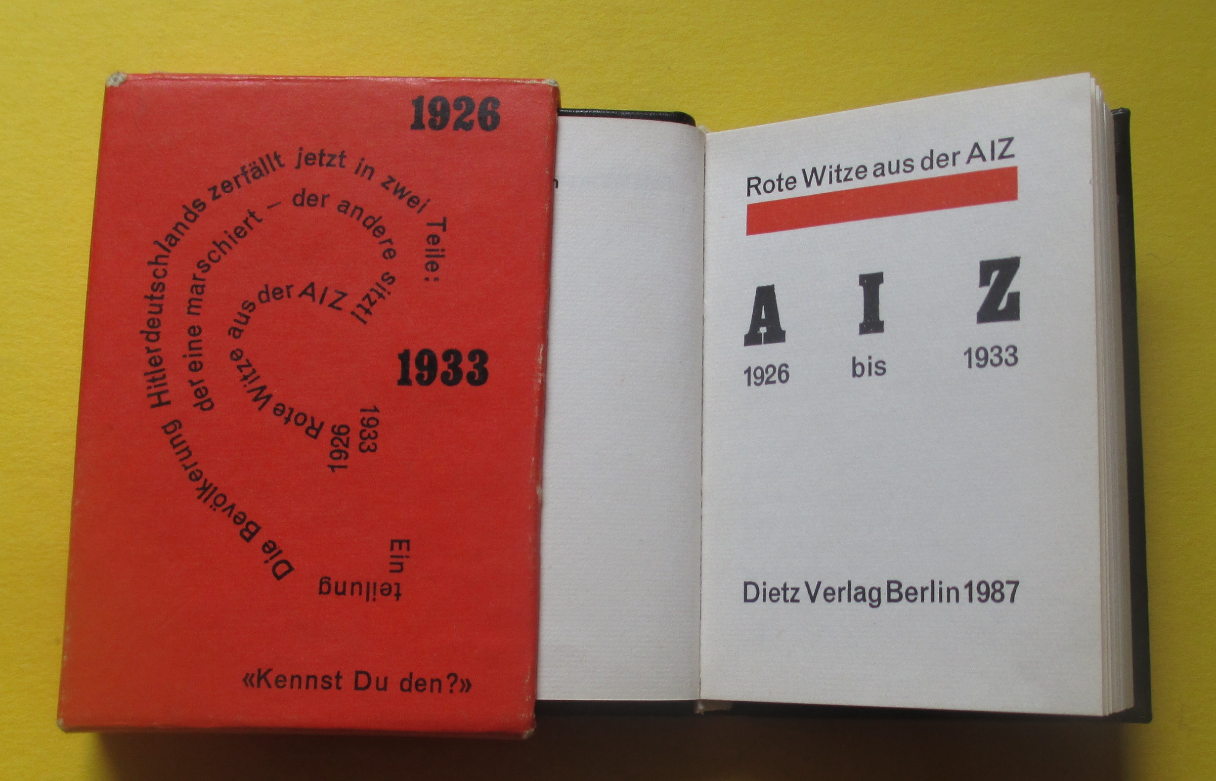 Buch im Format ca. 6 x 9 cm, im Schuber. Beinhaltet politische Witze aus den 1920er und frühen 1930er Jahren.