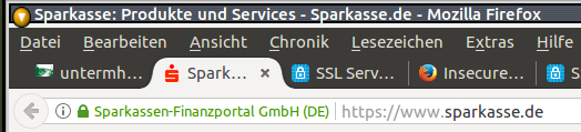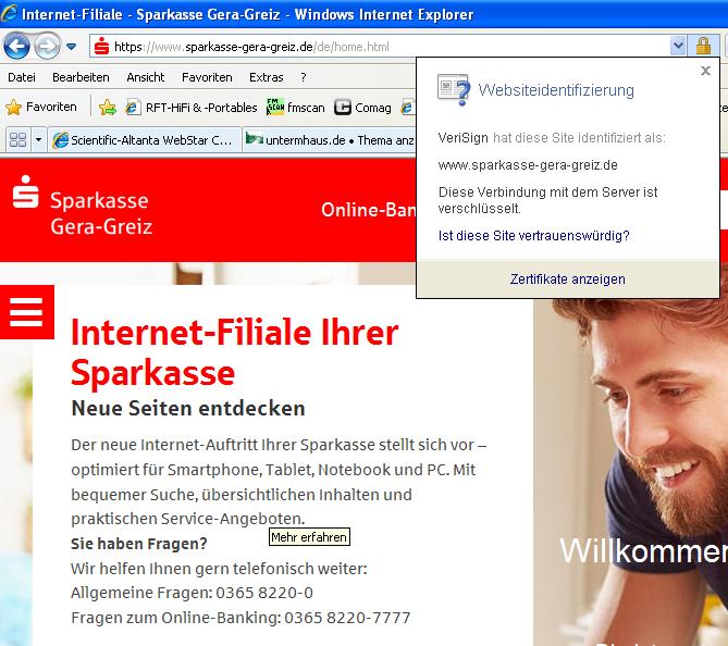 Selbstverständlich verwendet die Sparkasse ein Zertifikat, welches nicht nur verschlüsselt, sondern zusätzlich noch den Server als Sparkassenserver identifiziert. Bei Dir am Logo zu erkennen.