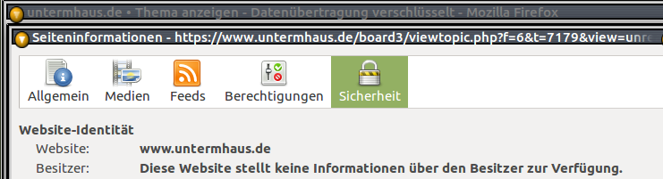 Das Zertifikat dient nur dazu, die übertragenen Daten zu verschlüsseln. Es dient bei uns nicht als Ausweis für die Echtheit des Untermhaus-Servers. So viel wollte ich nicht für die Verifizierung ausgeben.