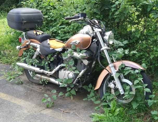Nachdem ihr beim letzten Bilderrätsel noch immer erraten müßt, daß es sich bei der Basis um selbstgemachten Kartoffelbrei handelt, gibt es hier ein weiteres Rätselfoddo. Gesucht ist die Marke und das Modell dieses Mopeds, was dort in einer lauschigen schattigen Ecke geduldig auf bessere Zeiten wartet. Wie üblich winken dem Einsteller der ersten korreckten Antwort zehn Groschen.