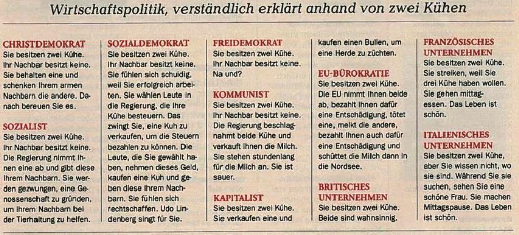 Naja, dieses System, das die Parteien ins Grundgesetz geschrieben hat, stellte sich als das ökonomisch erfolgreichste heraus. Diese ökonomische Überlegenheit trug 1989/90 Früchte.