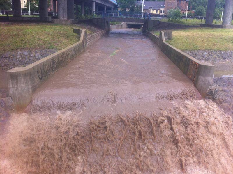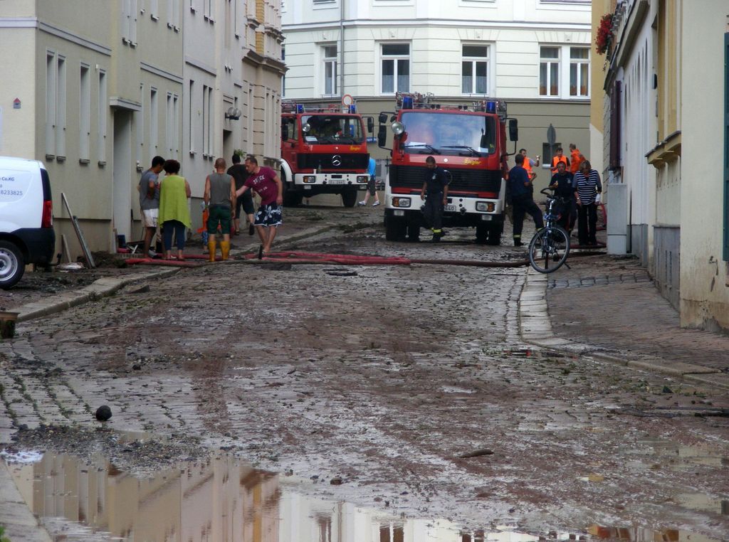 - an der Südwache der BF war Land unter - Kreuzungsbereich Weida Abfahrt/Lusan/Zwötzen 20cm und höher Wasser auf der Straße. Die Gullis waren wie Fontänen!