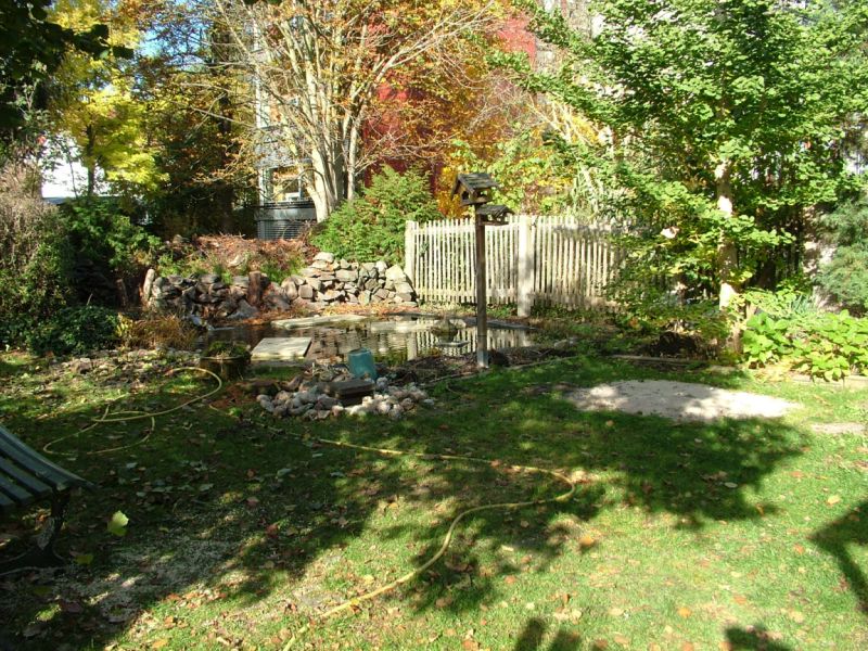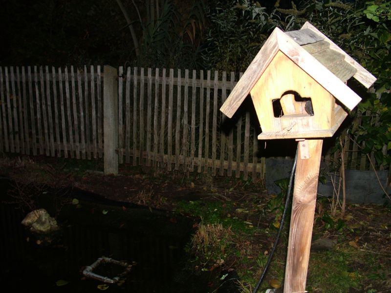 Als ich noch einen Teich hatte, stand danaben unauffällig ein kleines Vogelhäuslein.