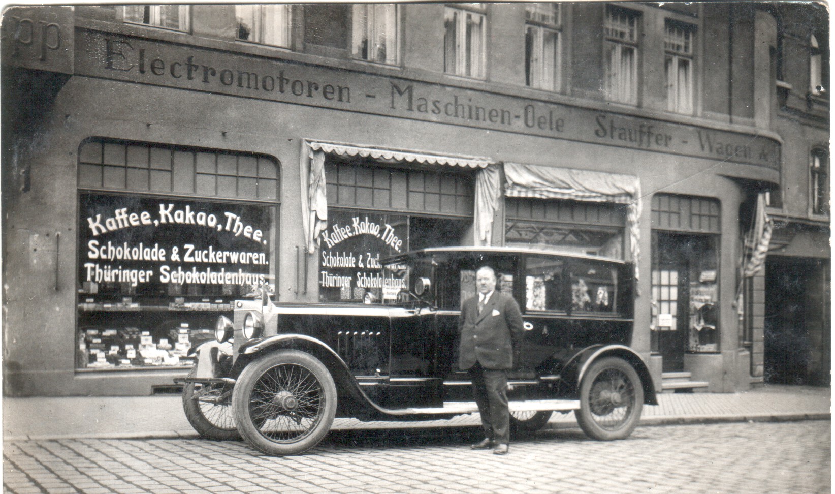Nun ja, das Schildchen "Kornmarkt" hat es demjenigen, der aufmerksam geschaut hat, nicht all zu schwer gemacht. Der Blick geht vom Kornmarkt in die "Alte Schloßgasse" in Richtung Harboustraße, die heutige Bezeichnung "Florian-Geyer-Straße" ist somit richtig. Links am Bildrand sehen wir das Geschäft von Wilhelm Opolka, Liköre und Spirituosen.
