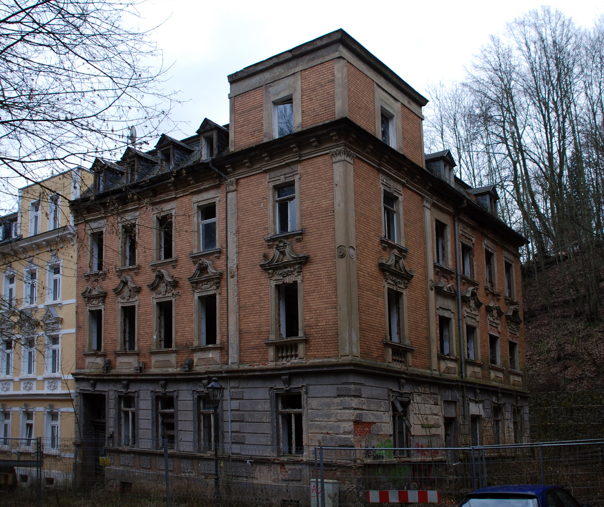 Das könnte doch hier theoretisch auch der Fall sein. Insbesondere weil rechts und links die Häuser saniert sind. Denn auch bei nicht so hoher Miete sollte die Finanzierung zur Sanierung bei einem Mehrfamilienhaus möglich sein, jetzt wo ihr Hochschulstadt werdet ;) aber so gut kenne ich mich da in Gera auch nicht aus... und wer weiß wie weit der Verfall schon fortgeschritten ist, insbesondere wenn es noch gebrandt hat...