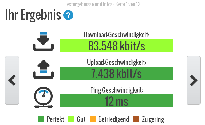 Es kommen aber nur selten mehr als 55 Mbit an. Sonntag früh 04:00 Uhr hab ich bei einem Speedtest mal knapp 85 Mbit erreicht.