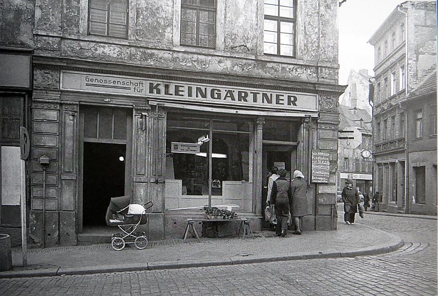 Steinweg/Ecke große Kirchstraße da war vor dem Umbau der Laden der Genossenschaft für Kleingärtner drin (siehe Bild)