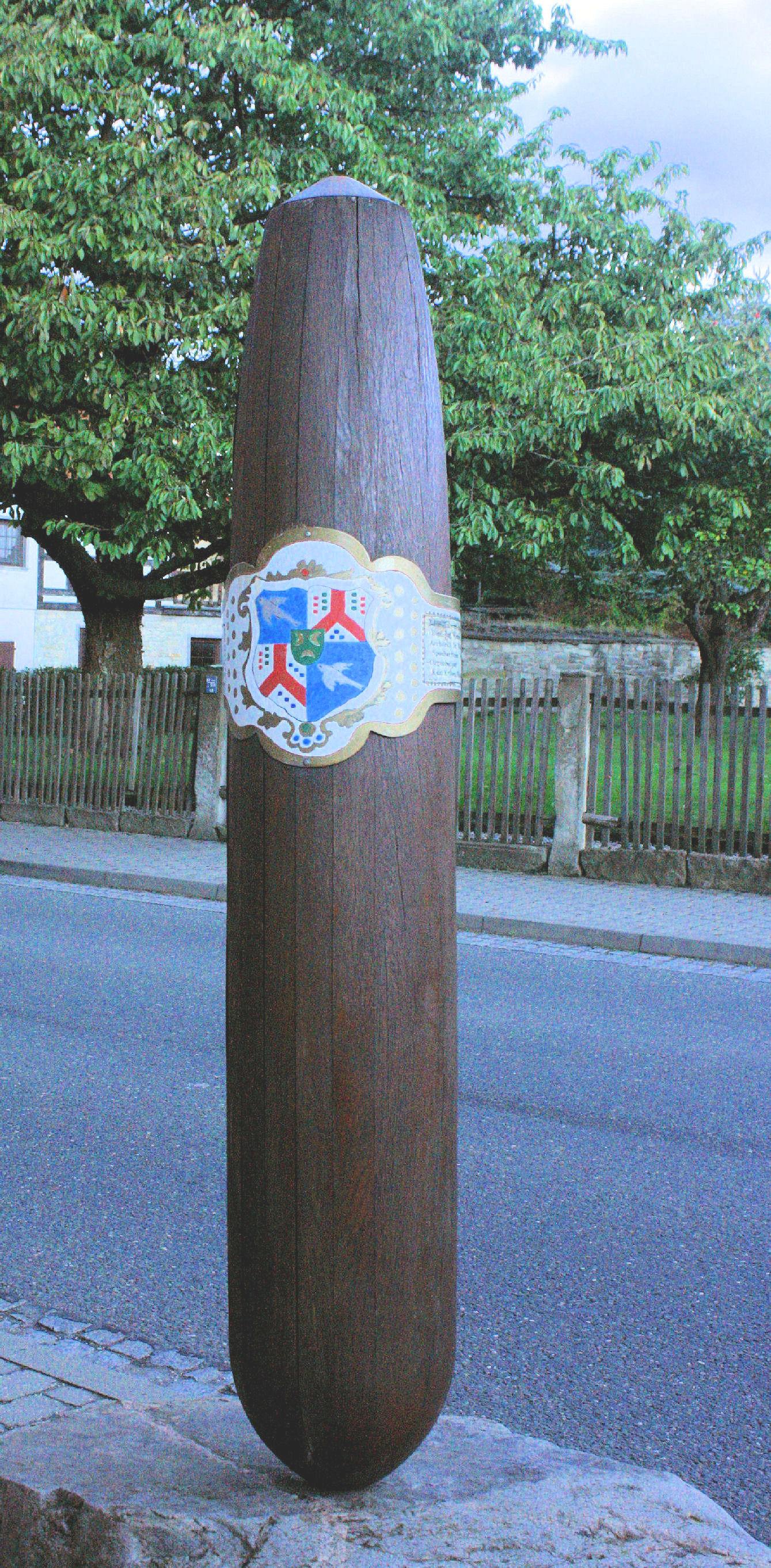 Denkmal in Form einer Zigarre in Pölzig im ostthüringischen Landkreis Greiz bei Gera.