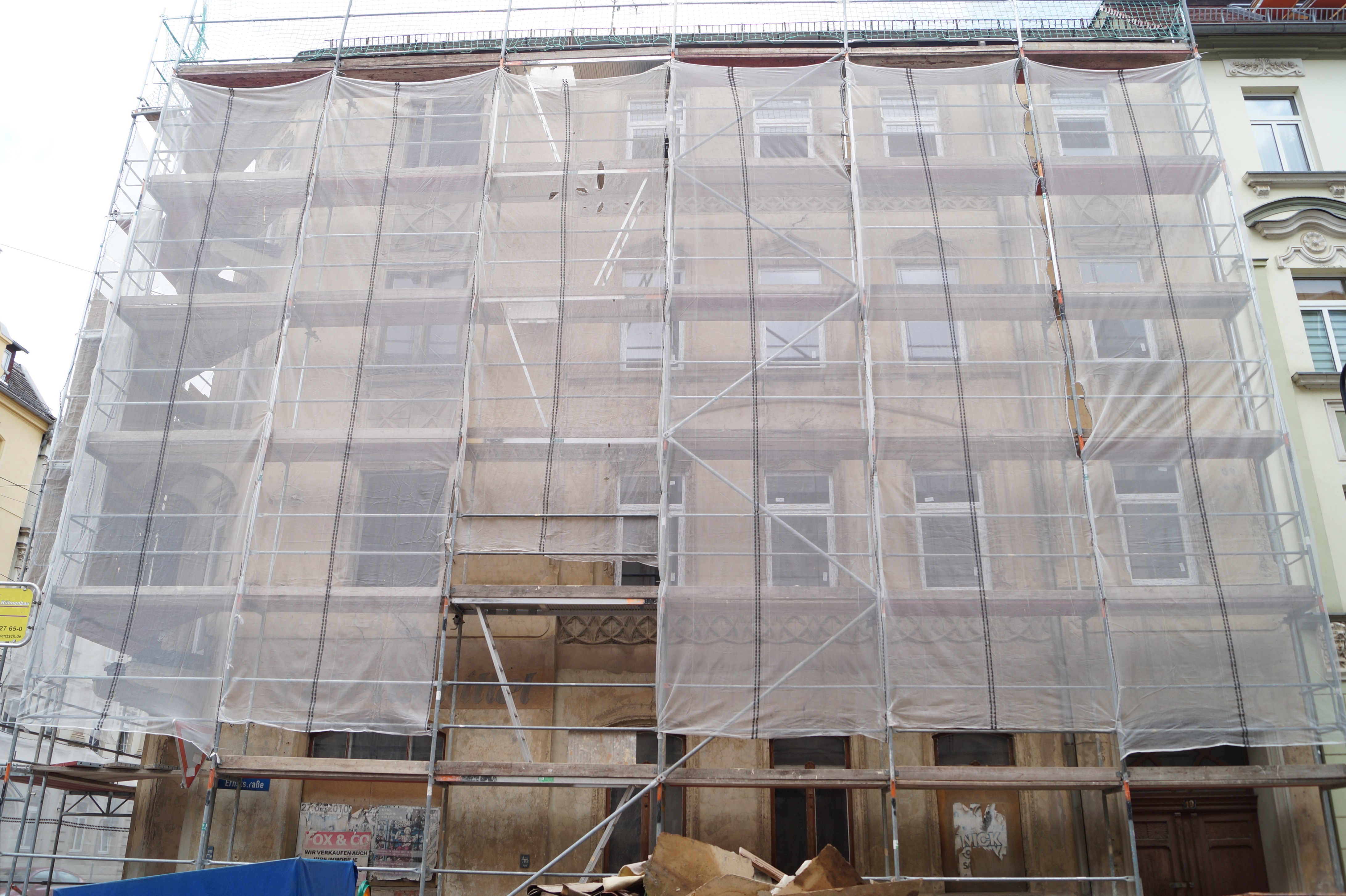 Gute Nachrichten: seit letzter Woche gibt es rege Tätigkeiten im Eckhaus Ernststr. / Leibnizstr.