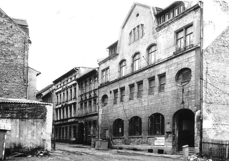 Das Eckhaus Ist die ehemalige Süße Ecke, und rechts an der Einbuchtung befand sich der Hort der Lutherschule mit den Räumen für die erste Klasse,