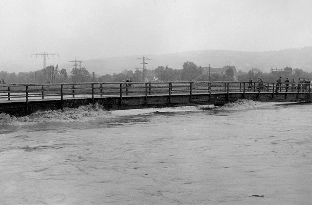 na klar ist das der Langenberger Sommersteg, welcher so standhaft dem Hochwasser getrotzt hat.