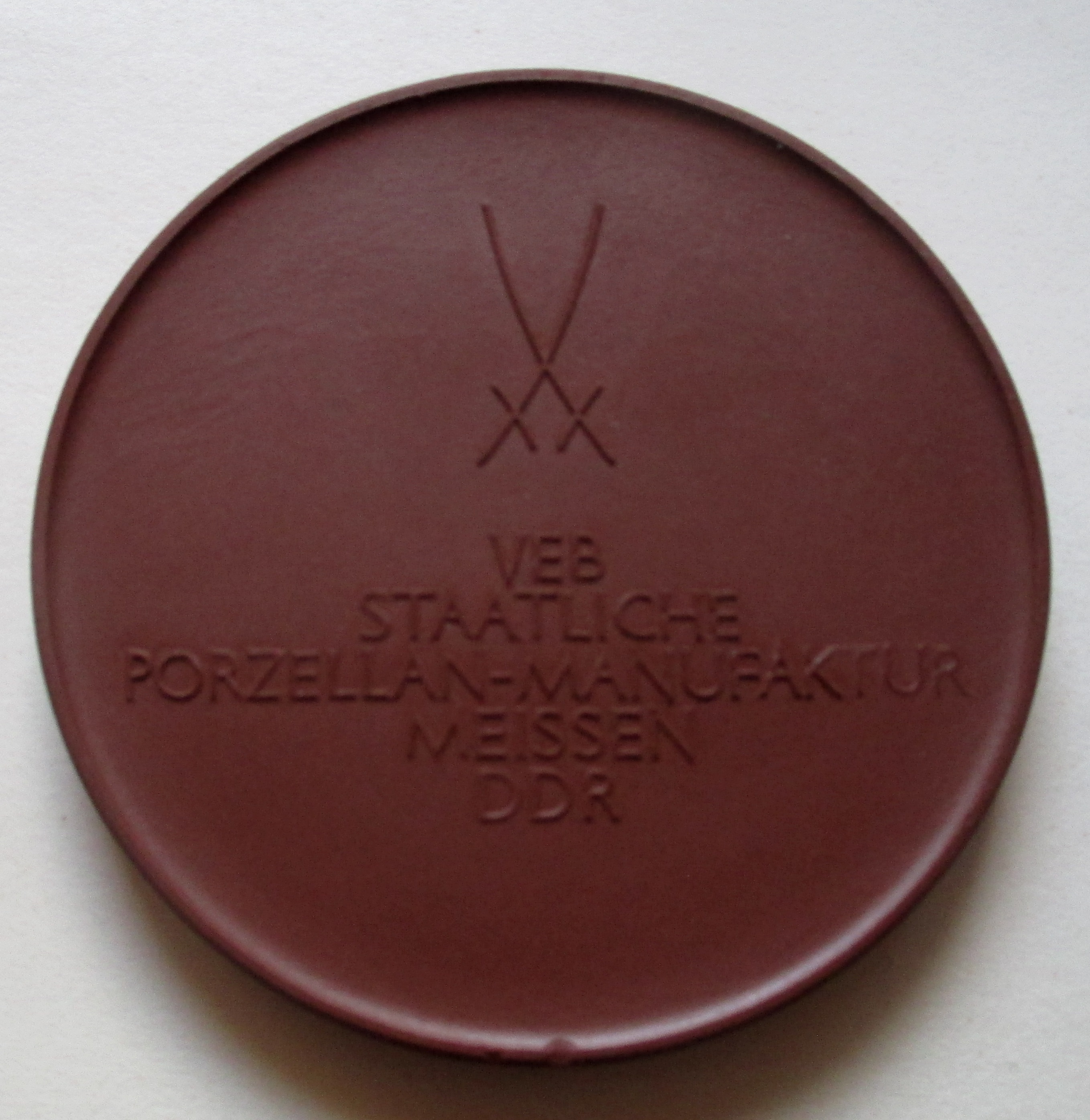 Für Liebhaber von Böttger Steinzeug und natürlich auch alle anderen biete ich hier eine Medaille an. Sie hat einen Durchmesser von ca. 6,3 cm und zeigt einmal das Schloß Moritzburg und rückseitig die Schwerter sowie den Hersteller, den VEB Staatliche Porzellan-Manufaktur Meissen, DDR.