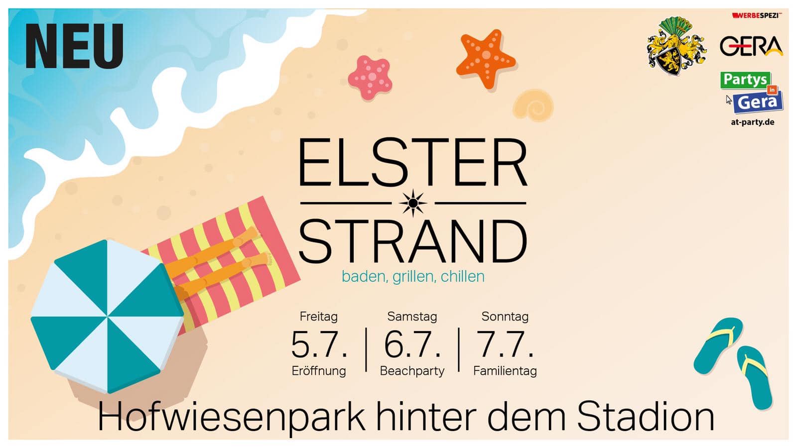 Nächsten Freitag (5.7.) passend zum Ferienbeginn weihen wir in den Abendstunden unseren neuen Elster Strand ein .