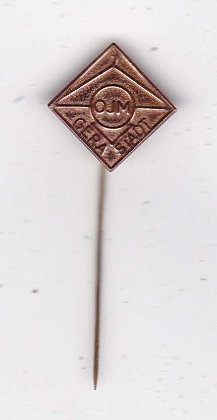 Ich habe heute eine kleinere Anstecknadel bekommen. Diese trägt die Aufschrift "OJM Gera-Stadt".