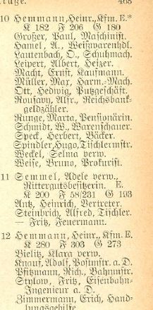 Im Adressbuch 1908 wird als Eigentümer des Hauses Bieblacher Strasse 27 ein Heinrich Hemmann genannt, die Berufsangabe lautet Weber. Das gleiche im Buch 1911.