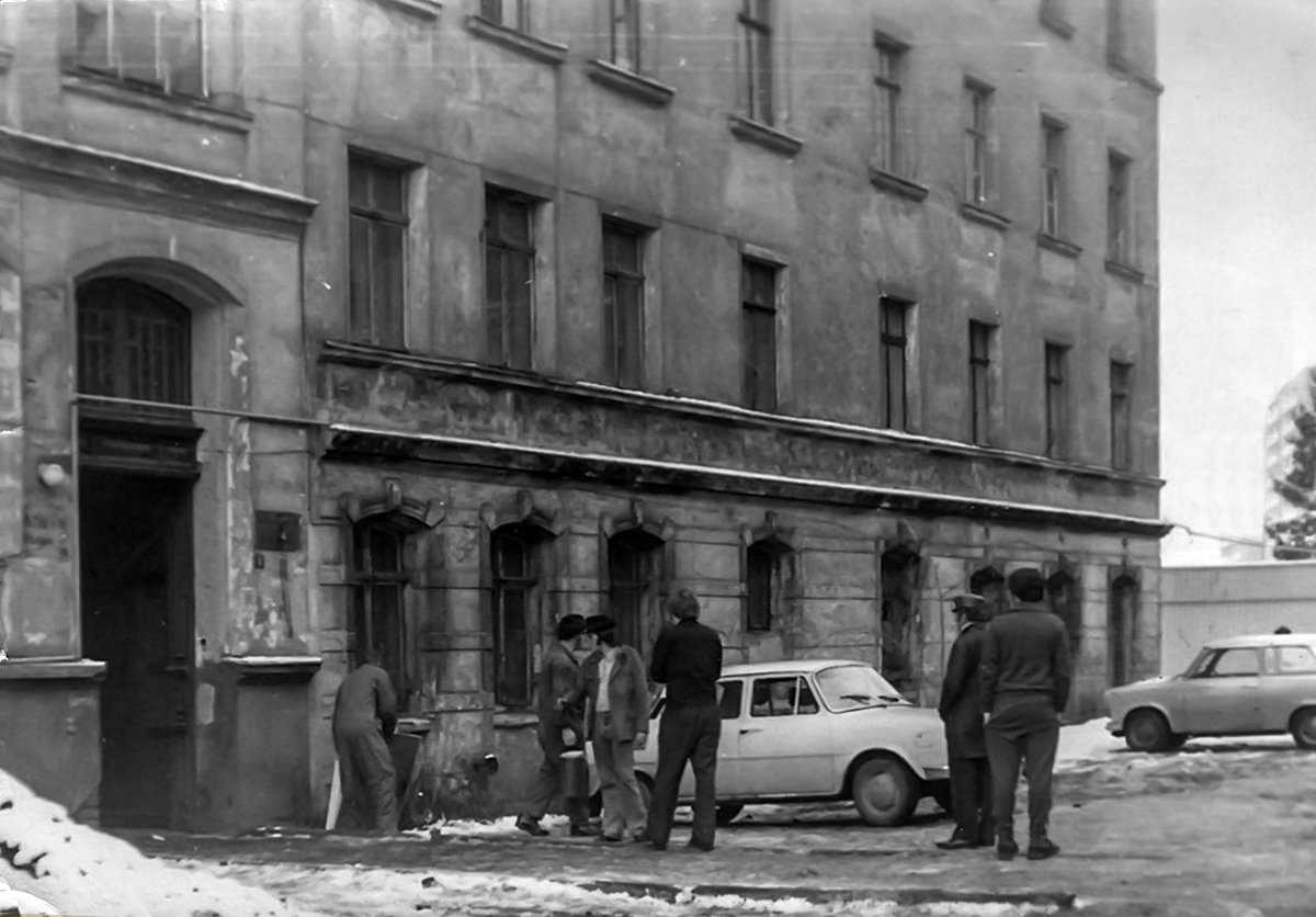Vor der Sprengung im August 1976 werden noch Sachen aus dem Gebäude geholt und umgelagert.